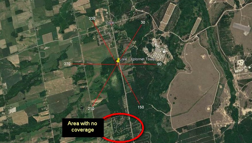 RPW on Twitter: "@xplornet - as you can see, no signal coverage facing south. In fact most of the signal is be directed into areas with no homes ( I.E. Base Borden
